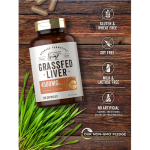 FÍGADO BOVINO: As cápsulas de liberação rápida fornecem 4.500 mg de fígado de bovino alimentado com capim superior.