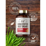 ÓRGÃOS DE CARNE BOVINA: As cápsulas de liberação rápida fornecem 3.250 mg por porção de órgãos bovinos premium.